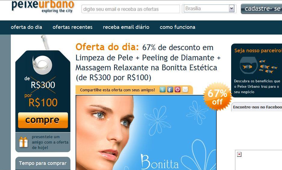 Este virou o maior spam dos últimos tempos. No início a ideia era até interessante, mas como as promoções eram bem melhores do que a parafernalha que oferecem hoje em dia e além disso, o prazo para o uso do desconto era de UM ano, o Rio de Janeiro inteiro corria loucamente para agendar horário e quando você tentava marcar aquela massagem super barata, só tinha hora para 2012. Isso sim eu chamo de fazer um "bom negócio"!