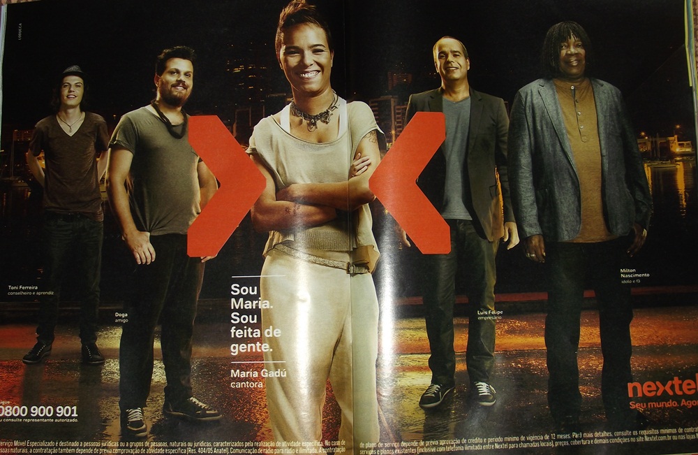 Não sei se sou a única que não captou a lógica da coisa, mas o que tem a ver o Milton Nascimento aparecer do nada cantando uma música esquisita, intercalando com outras pessoas duplamente estranhas, falando sobre uma tal de Maria, que no fim das contas parece se tratar da triplamente esquisita Maria Gadú, num comercial da Nextel? E ainda por cima o desfecho do filme aumenta ainda mais o mistêrio da tal propaganda esquizofrênica: a própria Maria Gadú surge falando cheia de razão, como se fizesse todo o sentido do mundo a frase "sou Maria e sou feita de gente". Oi??? Vou comprar um Nextel porque a Maria Gadú é feita de gente? Para desvendar esse mistério, talvez pudéssemos perguntar ao senador Demóstenes e seu amigo Carlinhos Cachoeira, integrantes do "Clube do Nextel", quem afinal é essa gente. Será que é gente como Demóstenes ou gente como a gente?